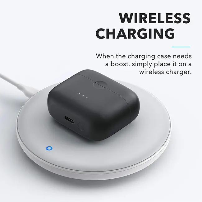 • کیس شارژ از USB-C و شارژ بی‌سیم (Wireless Charging) پشتیبانی می‌کنه.